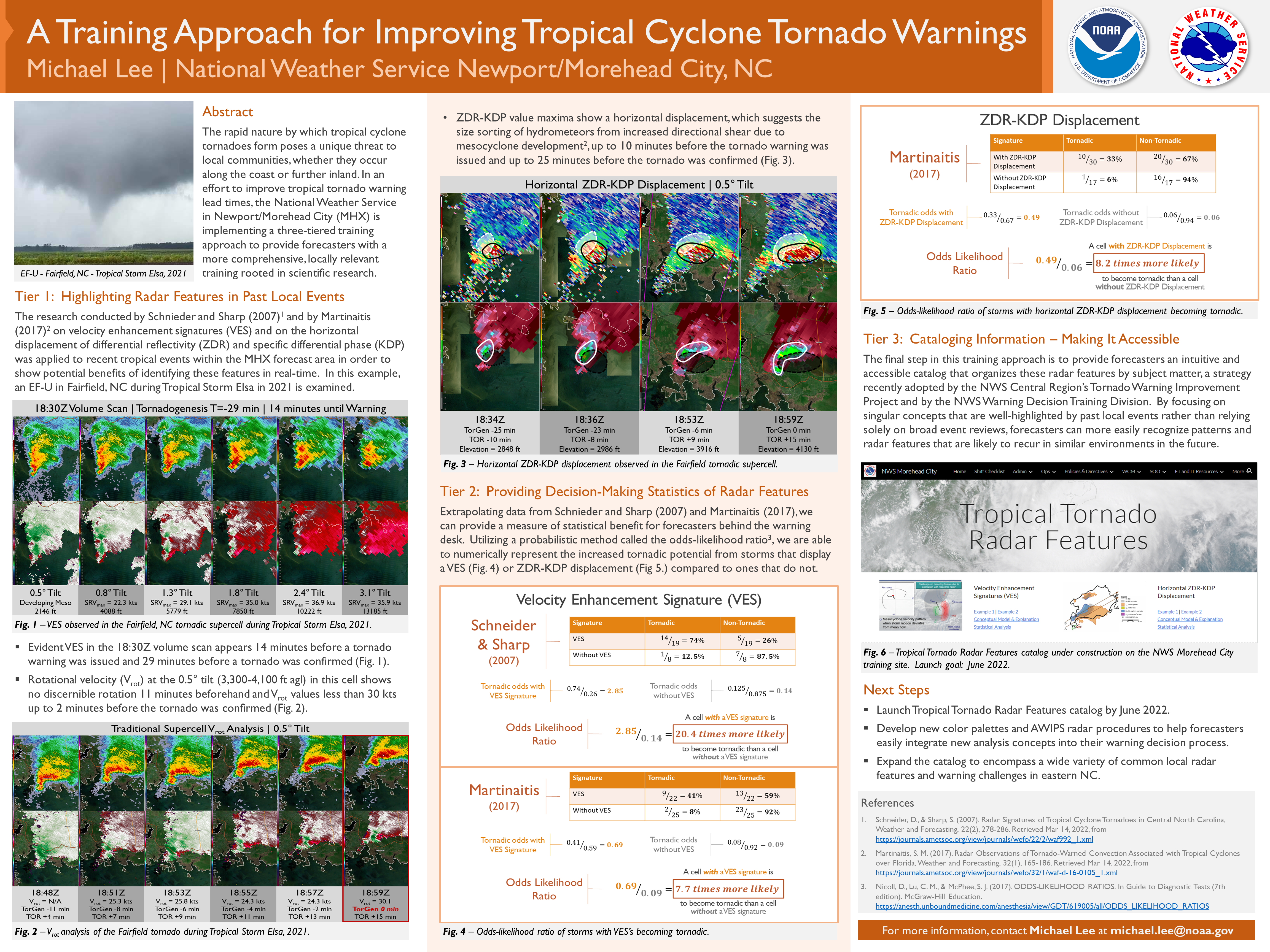 The rapid nature by which tropical cyclone tornadoes form poses a unique threat to local communities, whether they occur along the coast or further inland. In an effort to improve tropical tornado warning lead times, the National Weather Service in Newport/Morehead City (MHX) is implementing a three-tiered training approach to provide forecasters with a more comprehensive, locally relevant training rooted in scientific research.