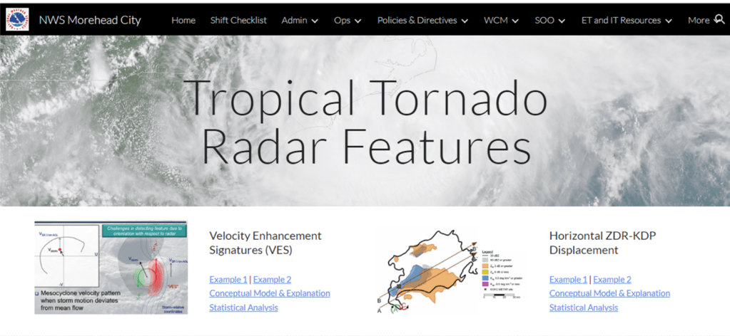 The research conducted by Schnieder and Sharp (2007) and by Martinaitis (2017) on velocity enhancement signatures (VES) and on the horizontal displacement of differential reflectivity (ZDR) and specific differential phase (KDP) was applied to recent tropical events within the MHX forecast area in order to show potential benefits of identifying these features in real-time.
