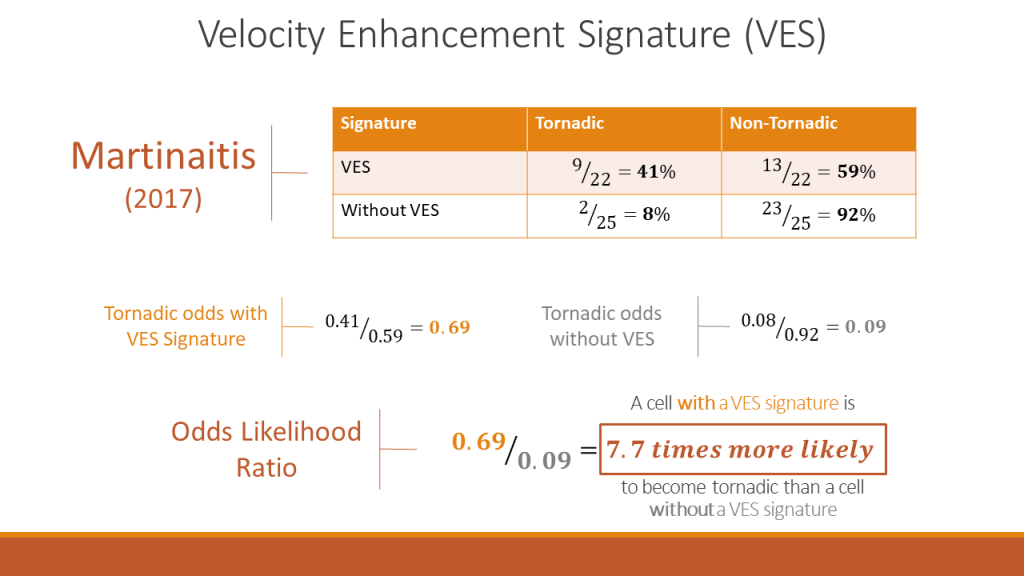 Fig. 3 – Odds-likelihood ratio of storms with VES’s becoming tornadic.
