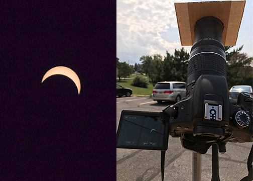 This was my first time filming a solar eclipse and I must say, it was an amazing experience! I took pointers from a few co-workers that were more experienced videographers and decided to give it a go. Utilizing my Canon T7i with a 75-300mm lens, I rigged a shade 14 welders glass and used it as a filter to capture this rare moment.